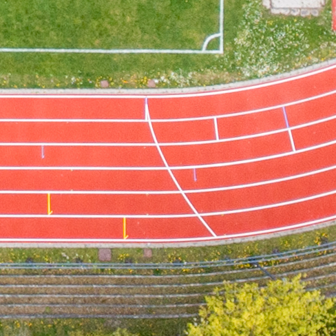 Aerial,Drone,View,Of,A,Soccer,Field,With,A,Red